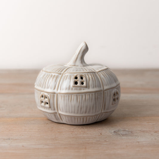 Ceramic Pumpkin Tea Light Holder - White or Grey