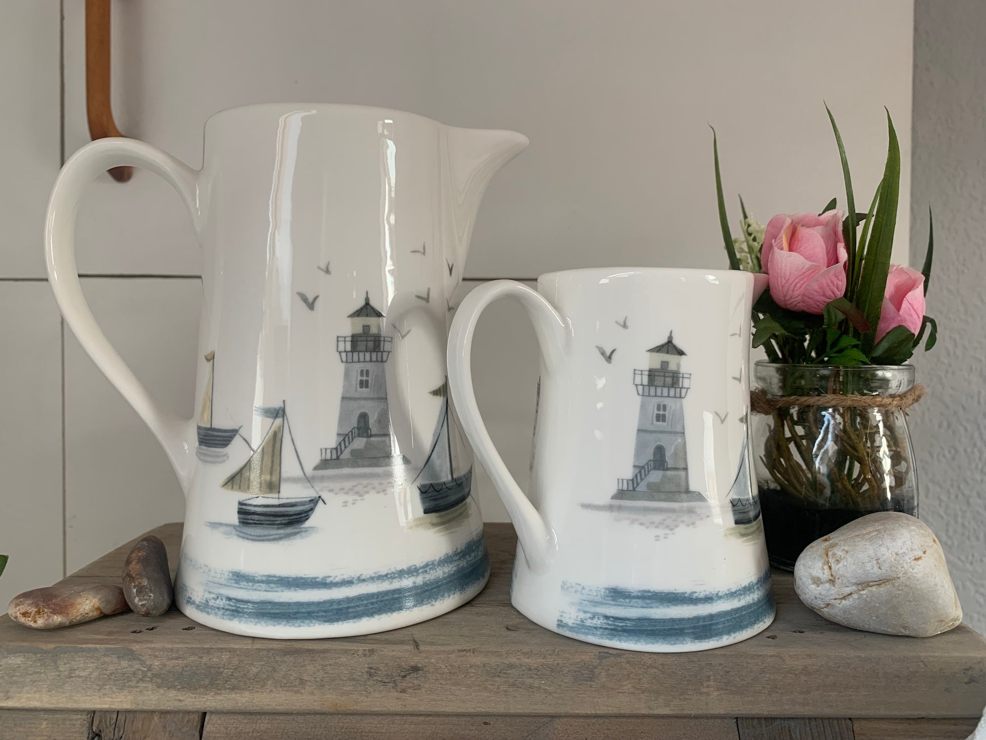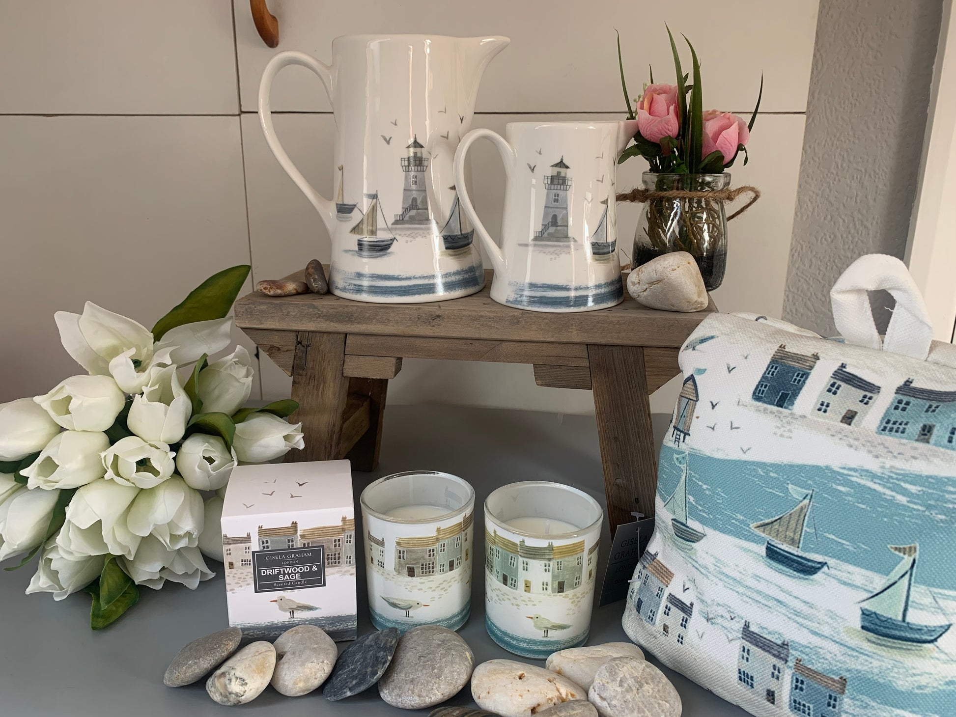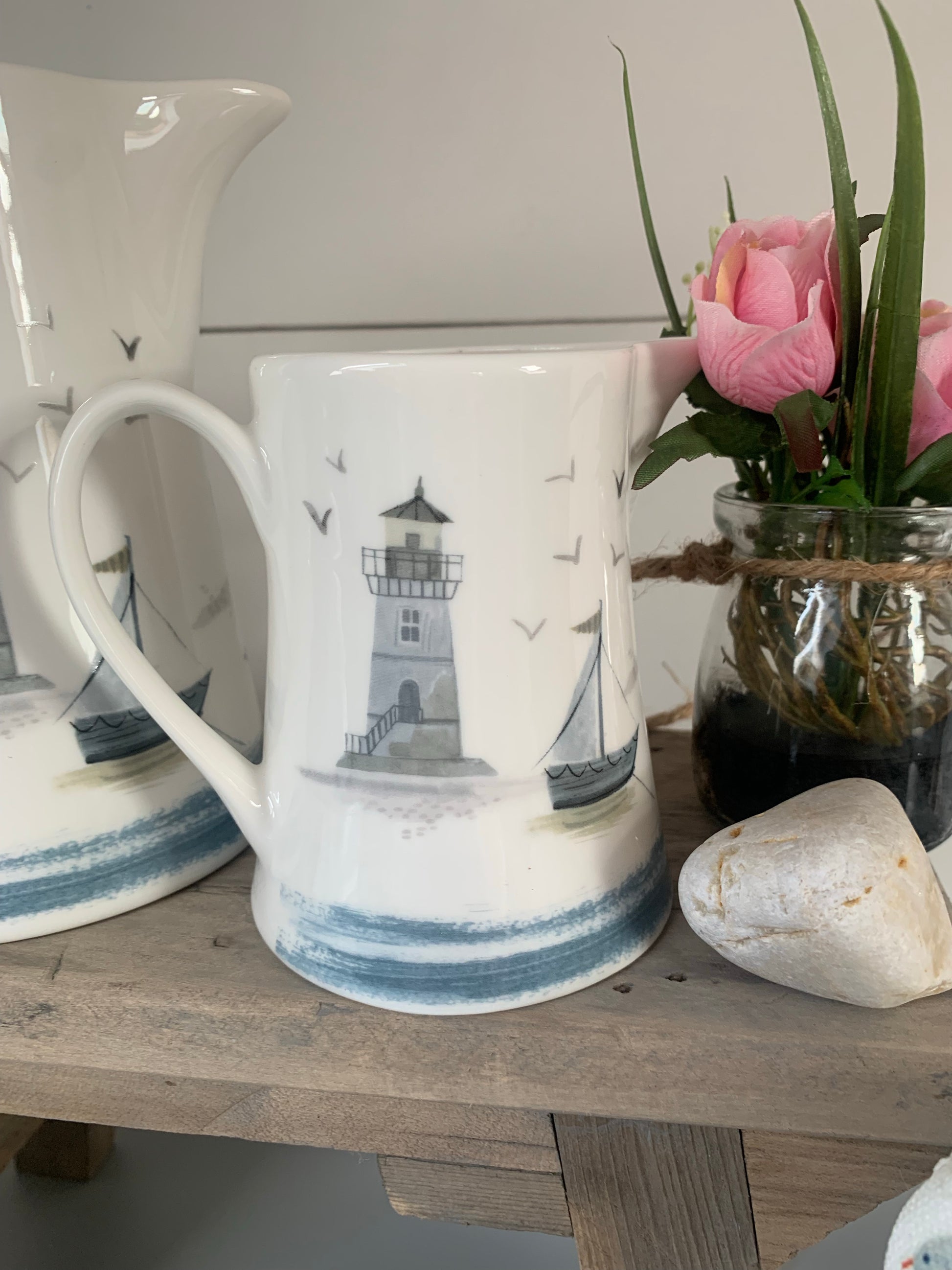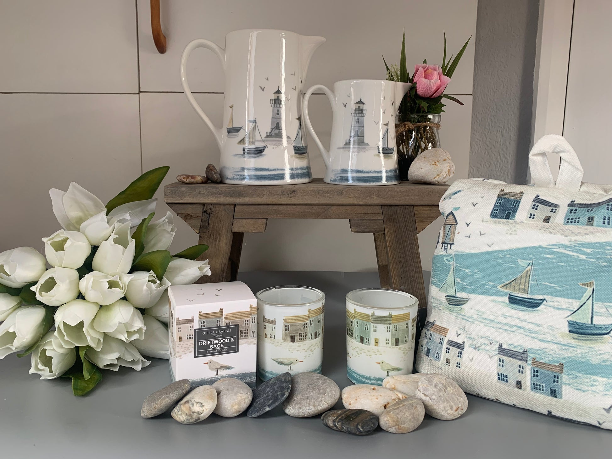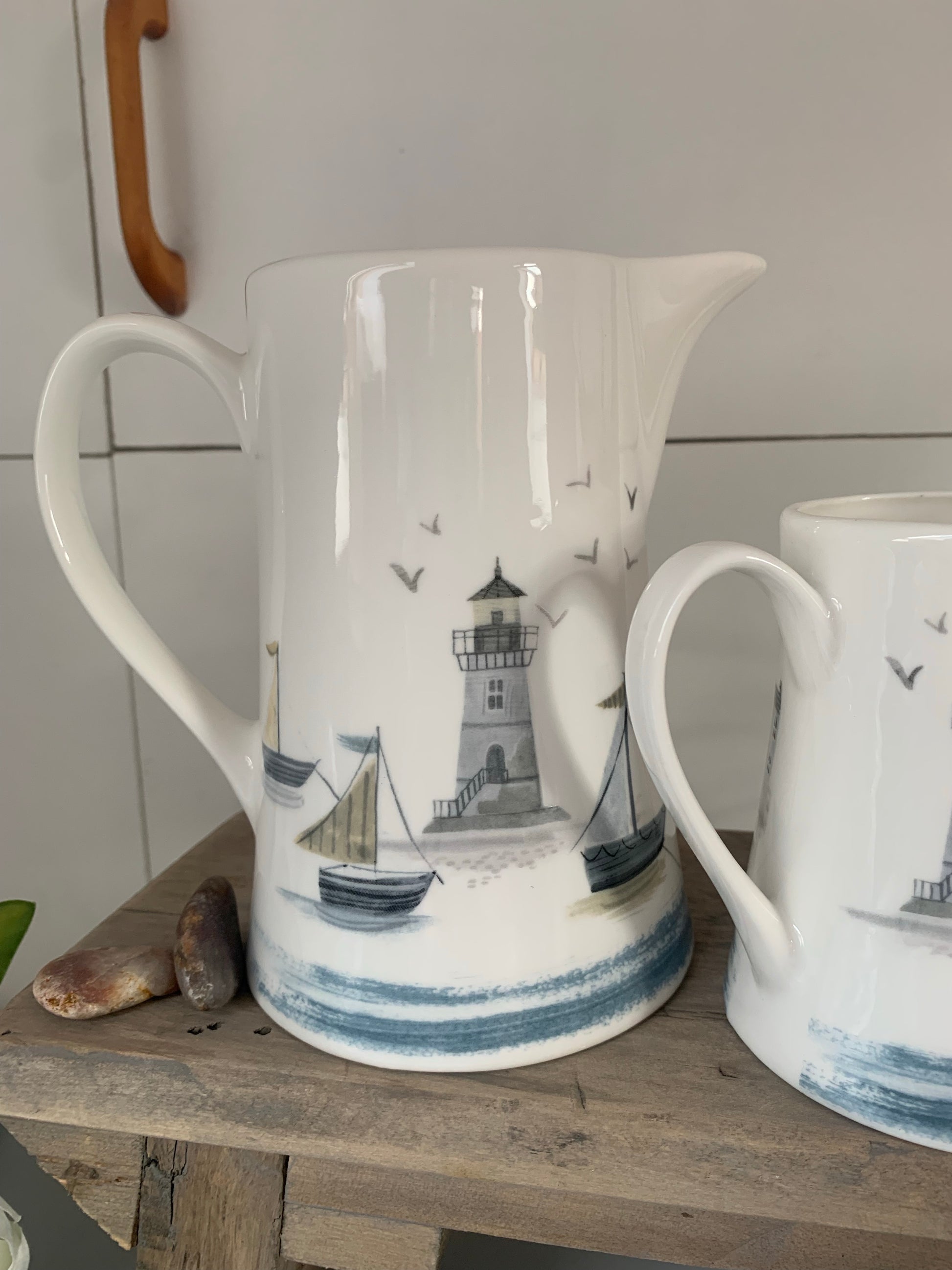 Gorgeous & stylish jugs with coastal grey & blue seaside design, comes in a plain presentation box. Ideal to use in the kitchen but we love them on show with some simple wild flowers.