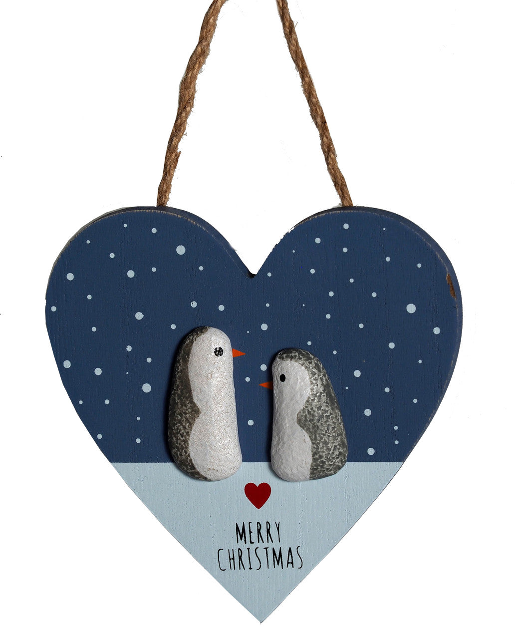 Such a gorgeous wooden hanging heart featuring Christmas penguins.