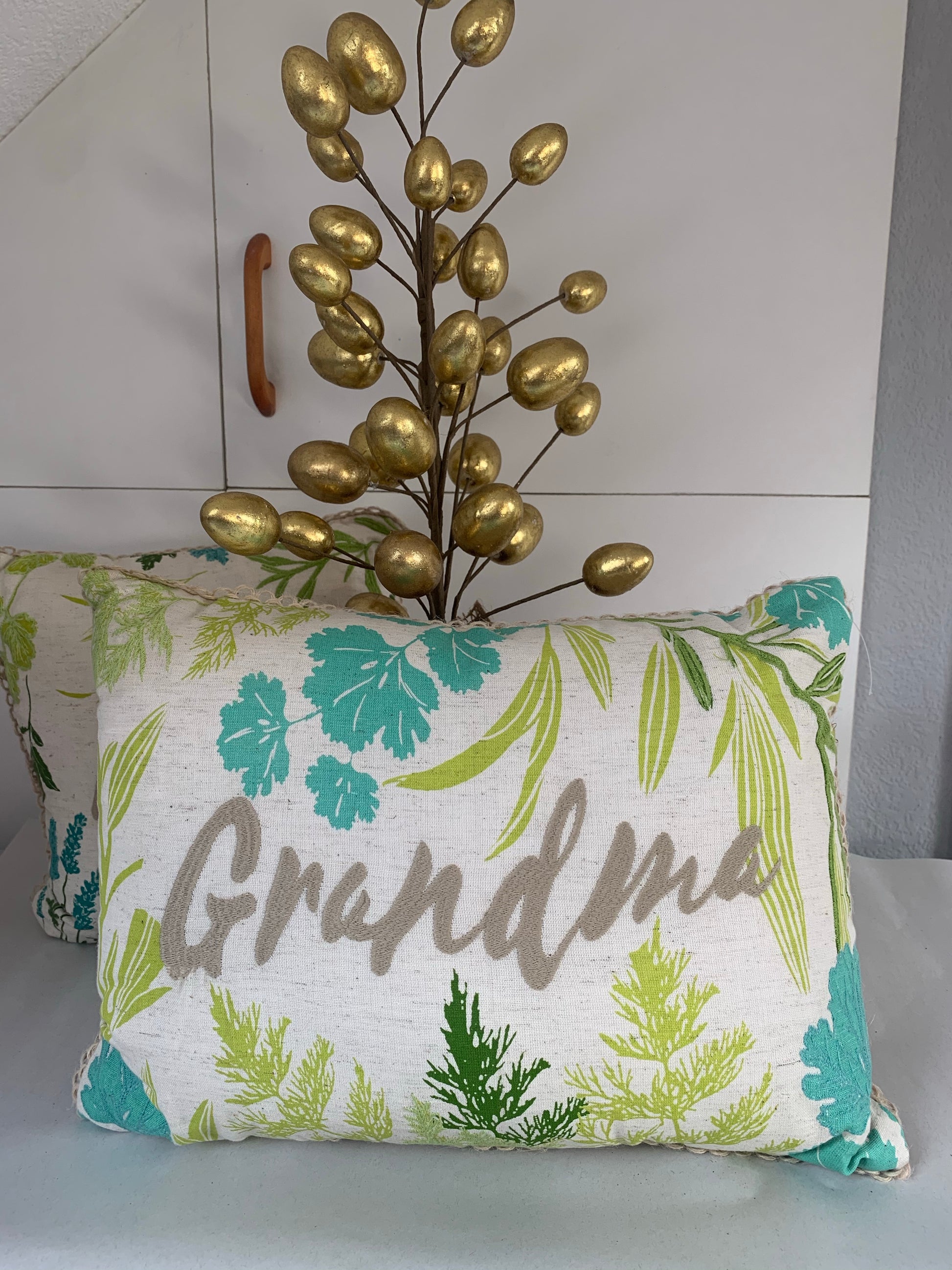 Very well made plump cushions with beautiful floral design and embroidered Mum or Grandma.