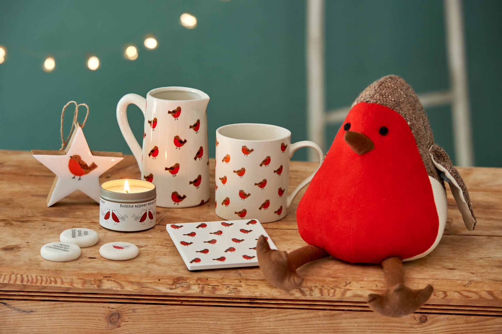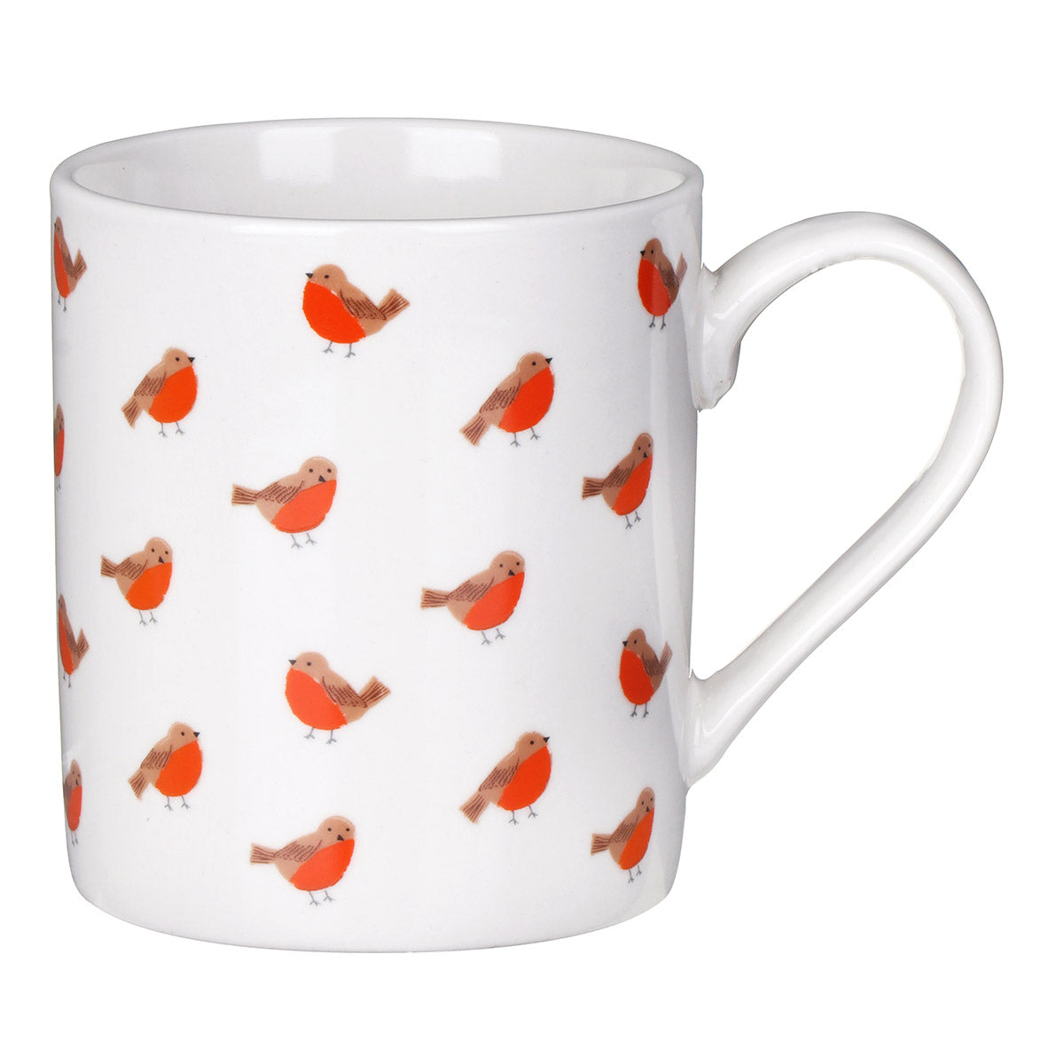 This mug is wonderfully designed in a smooth white texture. Decorating the mug is an array of jolly, red breasted robins all looking very chirpy!