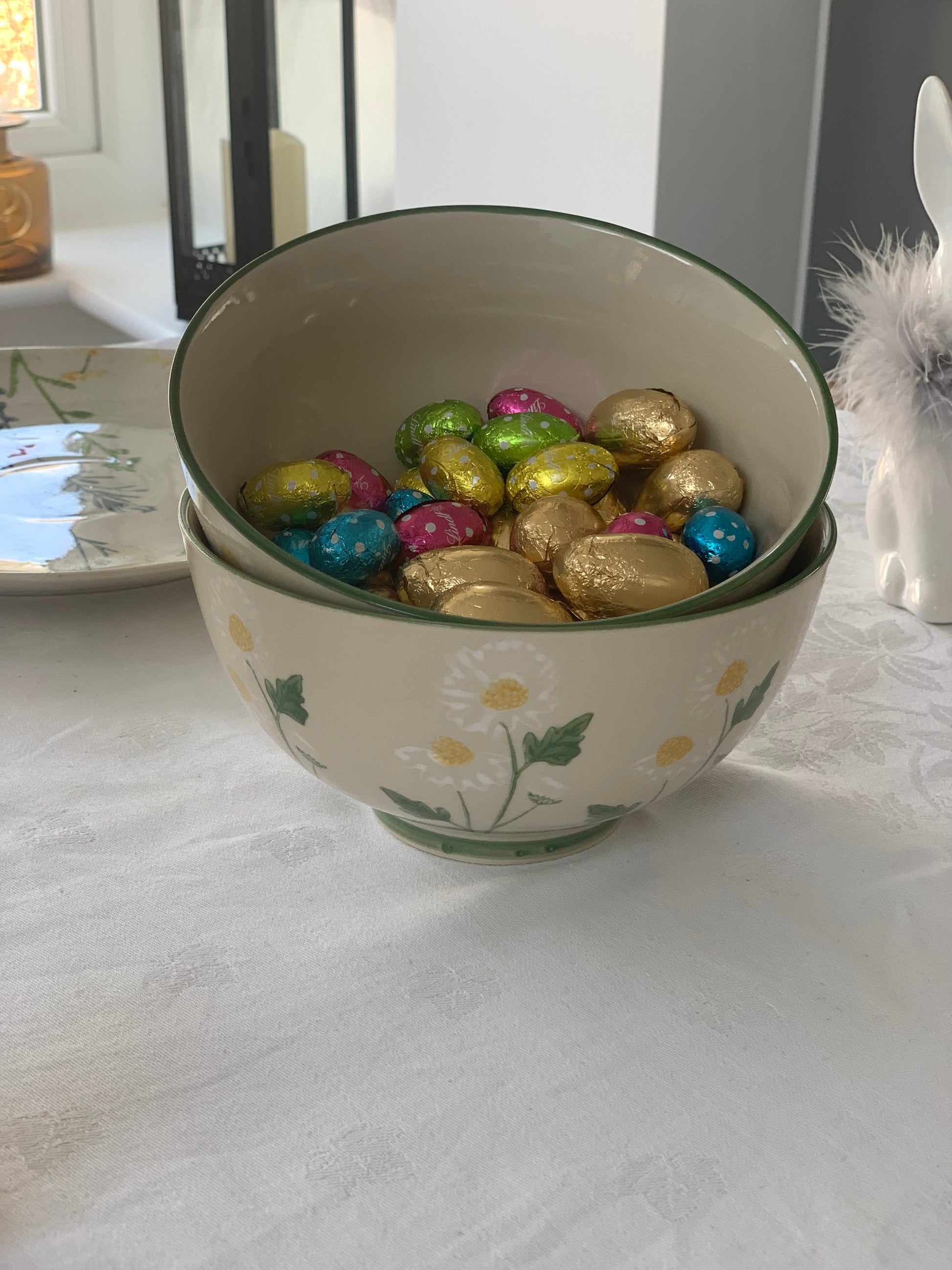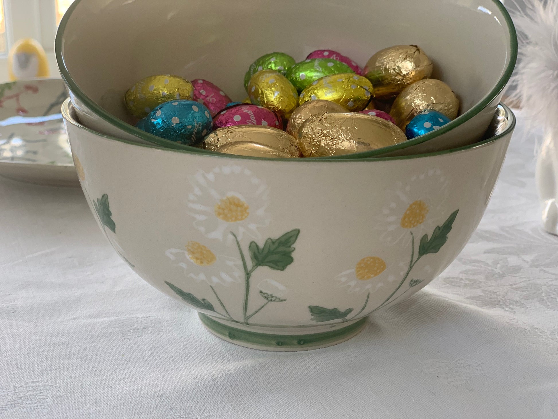 In handpainted 100% stoneware these bowls have a gorgeous fresh yellow & green daisy design which is perfect for the Spring & Easter season.