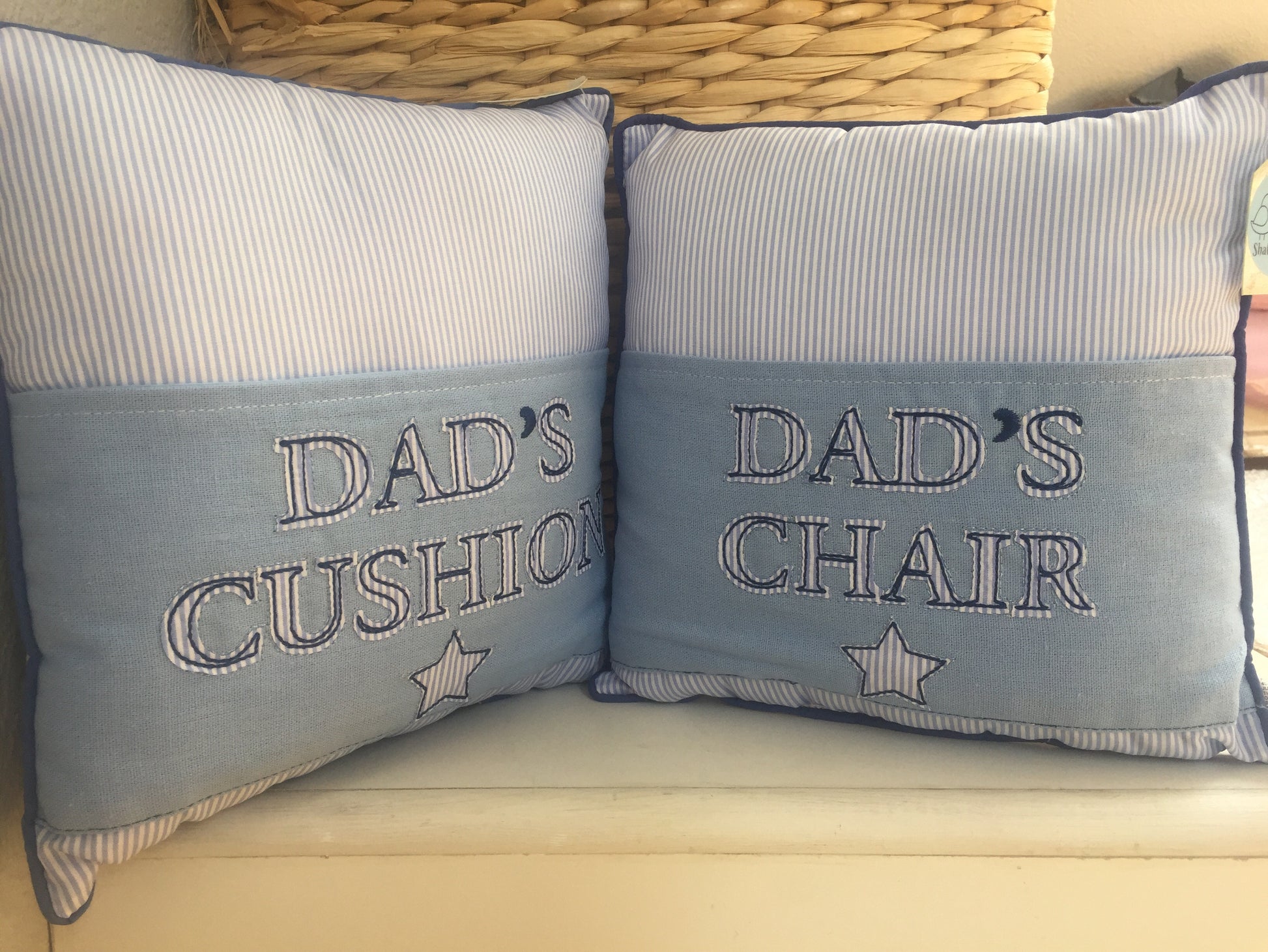 Such cute little cushions, just for Dad, to reserve the best seat in the house!