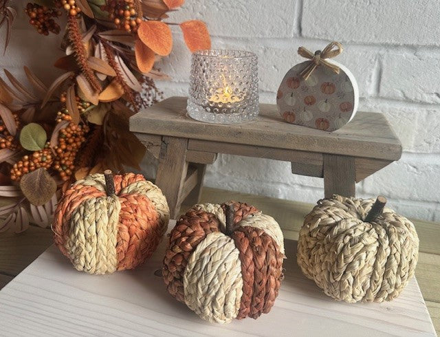 Set of 3 Small Raffia Pumpkins - 2 colour options