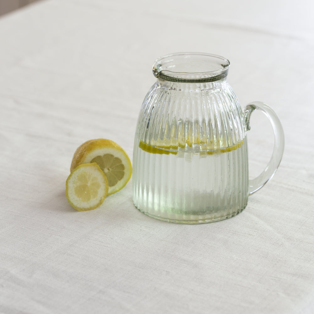 This pretty glass ribbed jug is not only the perfect practical kitchen accessory that will look lovely on the table but also ideal for displaying a pretty bunch of flowers.