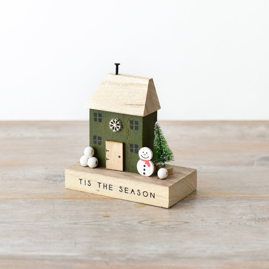 Such an adorable wooden block to enhance your home this Christmas season. It has a cute wreath above the door along with a Christmas tree & snowman to complete the scene. Just charming!