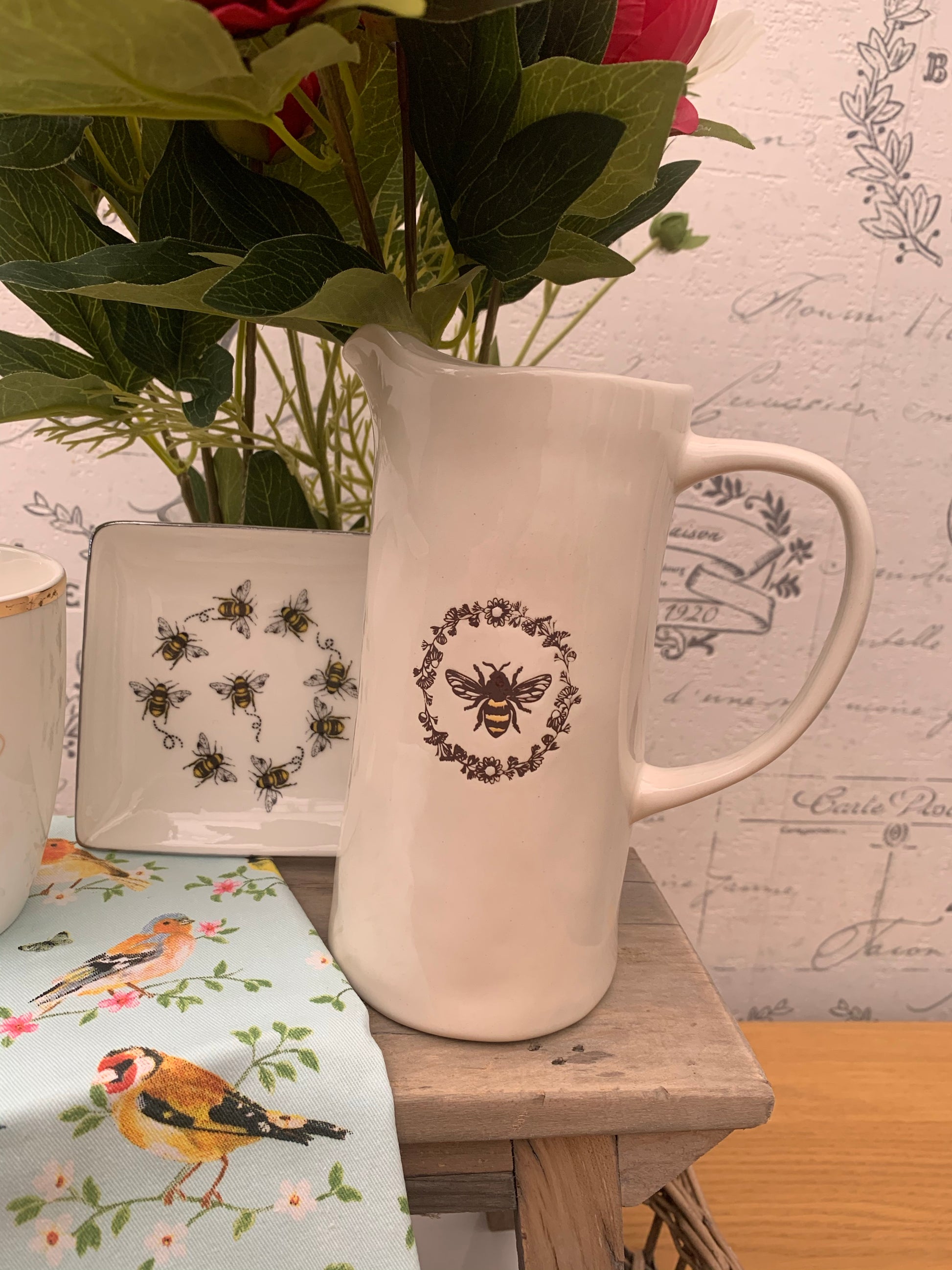 We love this jug! It's 'wavy' finish is totally unique and really adds to the style, the circular bee design completes a truly special jug.