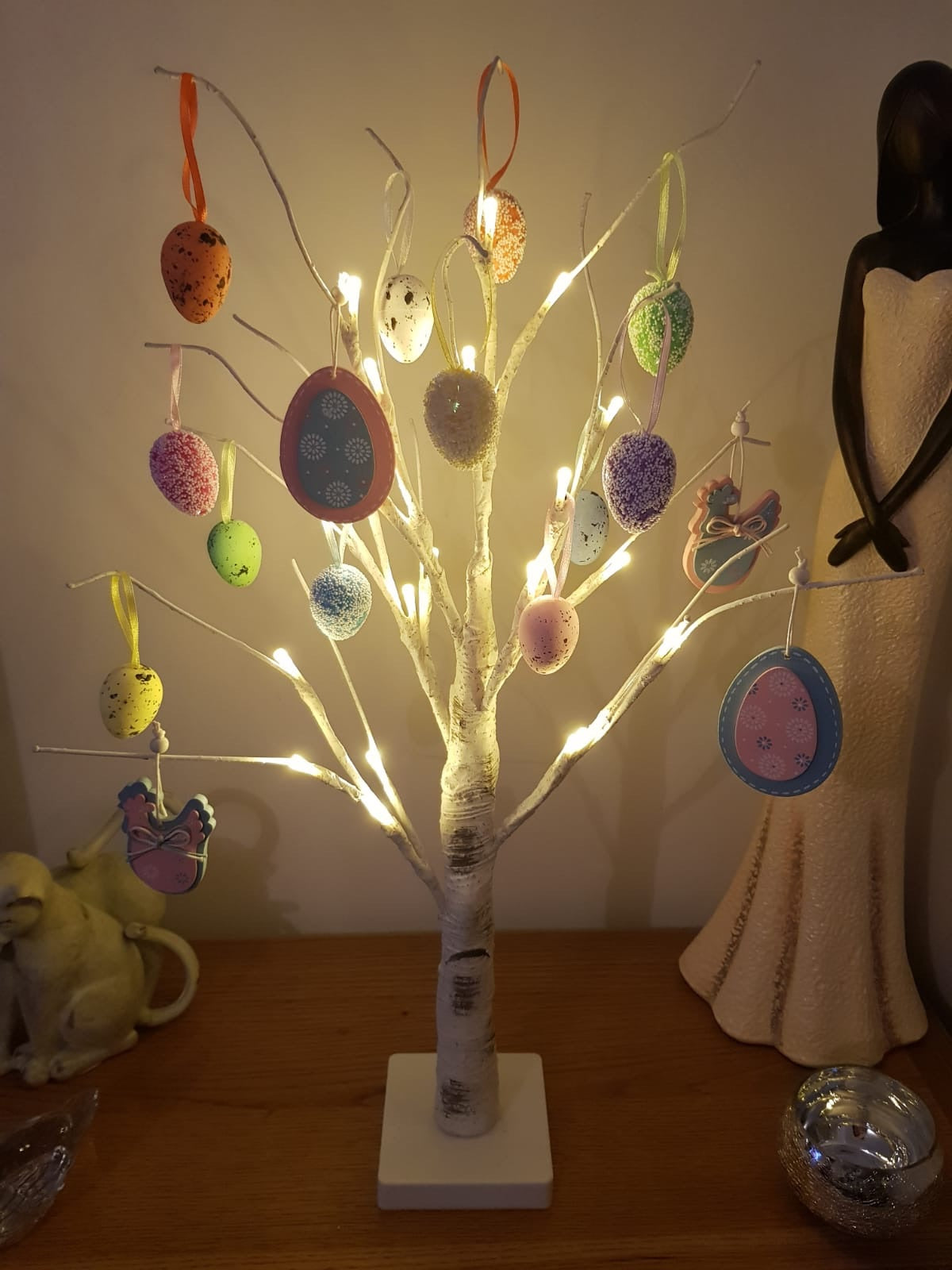 Our white Easter tree complete with an assortment of hanging eggs will be the centre of your Easter look, we've got ours up already! Looks gorgeous on your mantle or kitchen table to welcome your visitors over the season.