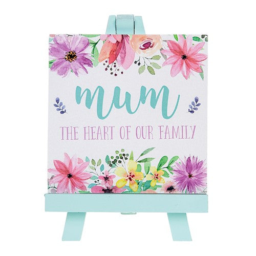 Standing on it's own little easel, our pretty words of art plaque tells Mum that she is the very heart of your family. Lovely gift for Mother's Day.